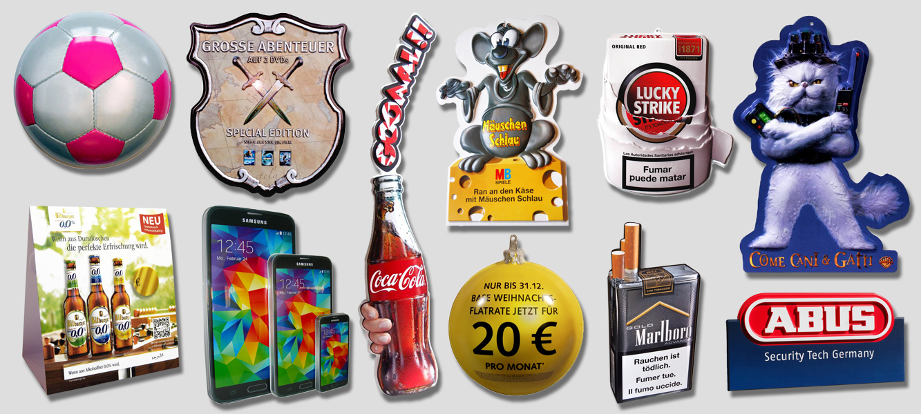 All 3D advertising materials are made of plastic and are created using a vacuum forming process. The displays are produced down to the last detail thanks to precise and careful work.
